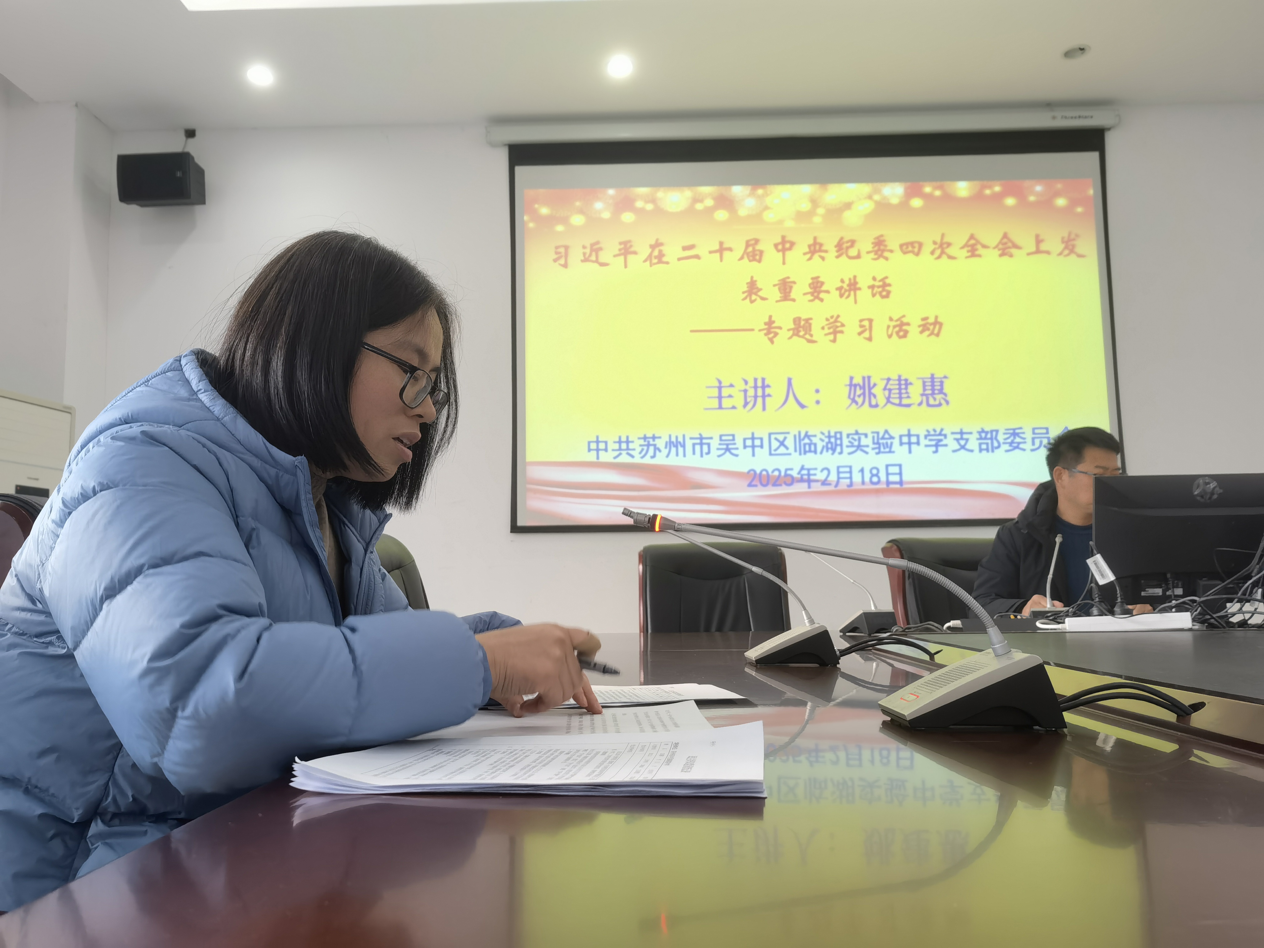 最后江巧根书记指出,各位党员要深入学习领会习近平总书记关于党的建设的重要思想,不断实践,与贯彻党的二十届三中全会精神和习近平总书记对江苏、苏州工作重要讲话精神结合起来,努力掌握贯穿其中的立场观点方法、道理学理哲理,不断深化认识,全面理解把握,作为教师要树立服务学生成长,服务学校发展的主人翁意识,更要加强业务学习,通过潜心育人,促进学校教学质量的提升,为进一步奋力谱写“强富美高”
